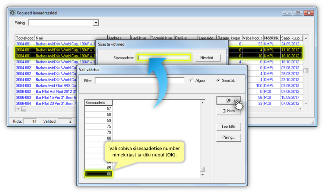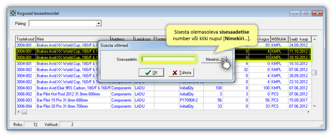 › Kuidas lisada sisesaadetisele ridu aknast kogused aadressidel?