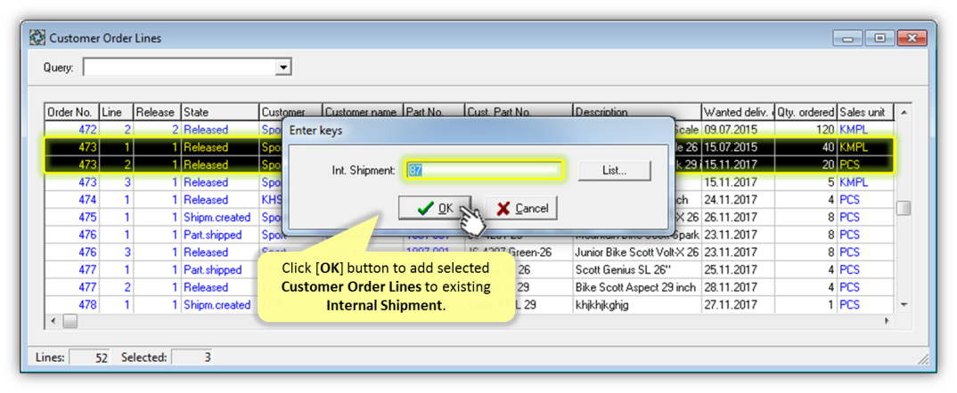 › How to add Internal Shipment Lines from Customer Order Lines list?